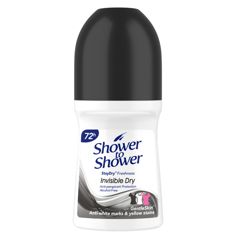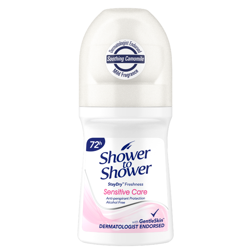 Shower to Shower roll-ons provide 72 hour protection from sweat and odour so you feel fresh and confident all day. The range contains GentleSkin for the added comfort of your underarms. They are available in a variety of fragrances, and include a specially formulated option for sensitive skins, and a variant to reduce white marks and yellow stains.
